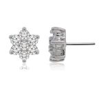 Pretty CZ flower stud earrings, this elegant pair is made with high quality cubic zirconia and rhodium plated base metal. Beautiful earrings for women, ladies and girls. Would also make a great present for birthday, Valentine's day, Mother's day, wedding, anniversary, Christmas gifts, party, any special occasions or simply a treat for yourself. Dimensions approx. 10.5 x 9.5 mm