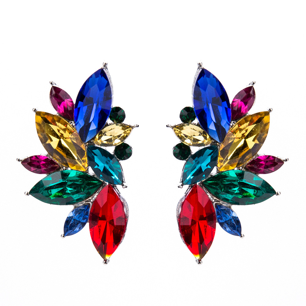 Dazzle on a special occasion with these crystal embellishment earrings, they are bursting with colour and perfect accessory for those who adore vibrant and vintage styling. The gorgeous and extra-glam designs feature multicoloured glass stones and round rhinestones adornment. They can be easily styled, ideal for adding a touch of charming elegance to everyday looks. They are versatile and will make a great addition to your jewellery box. These earrings are for pierced ears with stud fastening.