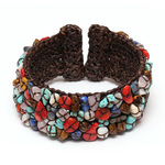 This cuff bracelet is made from natural stones stitched with waxed cords.Very beautiful and unique style as this piece is entirely handmade and individually handcrafted. The cuff measures 6 cm in diameter and it is flexible and adjustable to fit all sizes. Perfect for any occation and outfit. Would also make a fantastic gift for your loved ones, friends or just a little treat for yourself. Please note that colours and patterns of each piece may vary slightly as it is unique and individually hand-crafted. Please also allow for minor imperfections due to handcrafting process and material used.