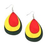 Red Yellow Wooden Layered Teardrop Dangle Earrings