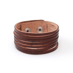 Dieses Armband aus organischem braunem Leder besticht durch sein modisches Aussehen, welches von den aufgeschlitzten Ledersträngen ausgeht. Das Armband ist ca. 27mm breit mit einer Länge von 22cm.