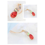 Eleganz und Charme strahlen von dieser wunderschönen Halskette mit ihrem Anhänger bestehend aus Swarovskikristallen aus. Die Halskette selbst ist vergoldet was ihr das noble Aussehen verleiht ohne jedoch den Preis in astronomische Höhen zu treiben. Der Anhänger besteht aus drei tropfenförmigen Elementen von denen das erste mit kleinen Kristallen bestückt ist, von denen ein magisches Funkeln versprüht wird. Auf der mittleren Tropfenform befindet sich ein grüner Swarovskikristall und ein größerer, roter Kristall am letzten Element runden die Gesamtästhetik wohlwollend ab. Dank der ideal konzipierten Facettierung erhalten die Kristalle ihr heißbegehrtes Funkeln was an Diamanten und Rubine erinnert und Frauenherzen höher schlagen lässt. Swarovskikristalle stehen für Qualität und dies spiegelt sich in dieser Halskette sofort wider.