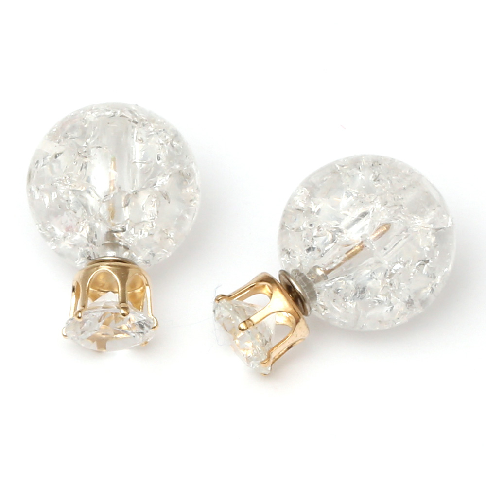 Vorne und Hinten - diese doppelseitigen Ohrstecker strahlen Charme von allen Seiten aus! Auf der Vorderseite befindet sich ein größerer Kristall aus Strass, der für ein angenehmes und verführerisches Funkeln sorgt. Die Rückseite der Ohrstecker zieht die Aufmerksamkeit mit den weißen Acrylperlen mit einem wunderschönen Crackle-Effekt, was den Eindruck ergibt, es befinden sich eine Unmenge kleinerer Sprünge in den Perlen (was natürlich nicht der Fall ist). Ob für das Ausgehen mit Freunden am Abend oder um den grauen Büroalltag etwas aufzulockern, diese Ohrringe finden für viele Anlässe Verwendung.
